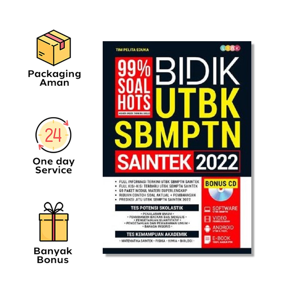 3. Soal-soal pada setiap modul adalah soal asli yang diujikan di UTBK SBMPTN Saintek ditambah soal asli ujian masuk perguruan tinggi lainnya, mayoritas adalah soal HOTS.
