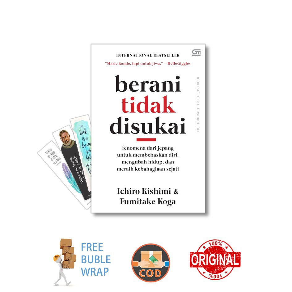 membaca buku ini bisa mengubah hidup anda. jutaan orang sudah menarik manfaat darinya. sekarang giliran anda. Berani Tidak Disukai, yang sudah terjual lebih dari 3,5 juta eksemplar, mengungkap rahasia mengeluarkan kekuatan terpendam yang memungkinkan Anda meraih kebahagiaan yang hakiki dan menjadi sosok yang Anda idam-idamkan. Apakah kebahagiaan adalah sesuatu yang Anda pilih? Berani Tidak Disukai menyajikan jawabannya secara sederhana dan langsung. Berdasarkan teori Alfred Adler, satu dari tiga psikolog terkemuka abad kesembilan belas selain Freud dan Jung, buku ini mengikuti percakapan yang menggugah antara seorang filsuf dan seorang pemuda. Dalam lima percakapan yang terjalin, sang filsuf membantu muridnya memahami bagaimana masing-masing dari kita mampu menentukan arah hidup kita, bebas dari belenggu trauma masa lalu dan beban ekspektasi orang lain. Buku yang kaya kebijaksanaan ini akan memandu Anda memahami konsep memaafkan diri sendiri, mencintai diri, dan menyingkirkan hal-hal yang tidak penting dari pikiran. Cara pikir yang membebaskan ini memungkinkan Anda membangun keberanian untuk mengubah dan mengabaikan batasan yang mungkin Anda berlakukan bagi diri Anda.