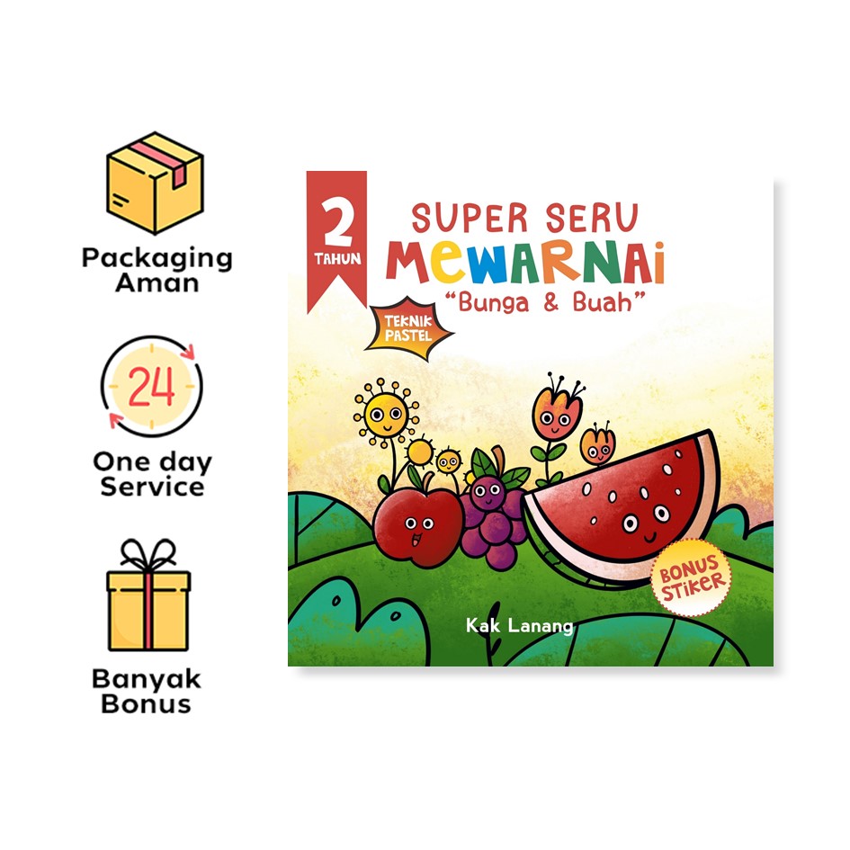 Buku mewarnai dengan teman “Bunga & Buah” yang diilustrasikan secara menarik dan lucu. Sehingga, anak-anak mudah memahami dan mengetahui gambar yang diwarnainya. Buku ini mampu memberi pengetahuan anak tentang berbagai serangga. Dengan buku ini, bisa melatih motorik, meningkatkan pengetahuan dan imajinasi, serta bermain secara bersamaan.