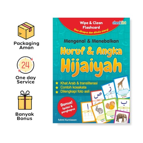 Kartu ini merupakan kreasi istimewa yang dibuat khusus untuk memfasilitasi si kecil dalam mengenal huruf dan angka hijaiyah. Lebih menariknya lagi, buah hati Anda juga bisa belajar menebalkan dan menuliskan huruf dan angka hijaiyah. Disediakan pula bonus spidol yang bisa digunakan si kecil dalam mencoret-coret kartu ini. Setiap coretan spidol di kartu ini bisa dihapus dan ditulis ulang. Jadi anak bisa belajar dengan asyik dan ceria tanpa perlu merasa takut salah. Dilengkapi dengan bonus spidol mini serta penghapusnya.